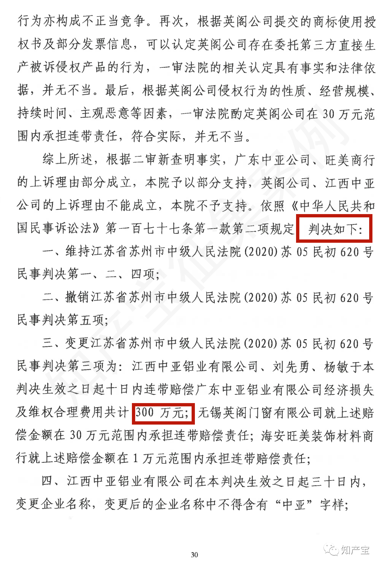 广东中亚铝业有限公司与江西中亚铝业有限公司、无锡英阁门窗有限公司、海安旺美装饰材料商行等侵害商标权及不正当竞争纠纷案